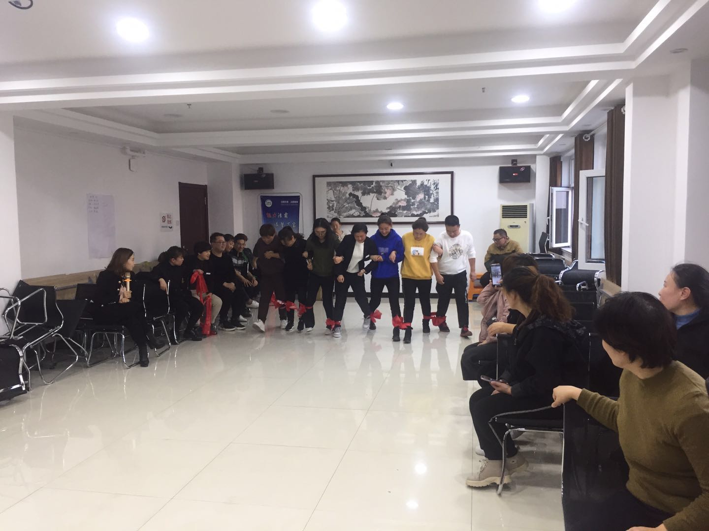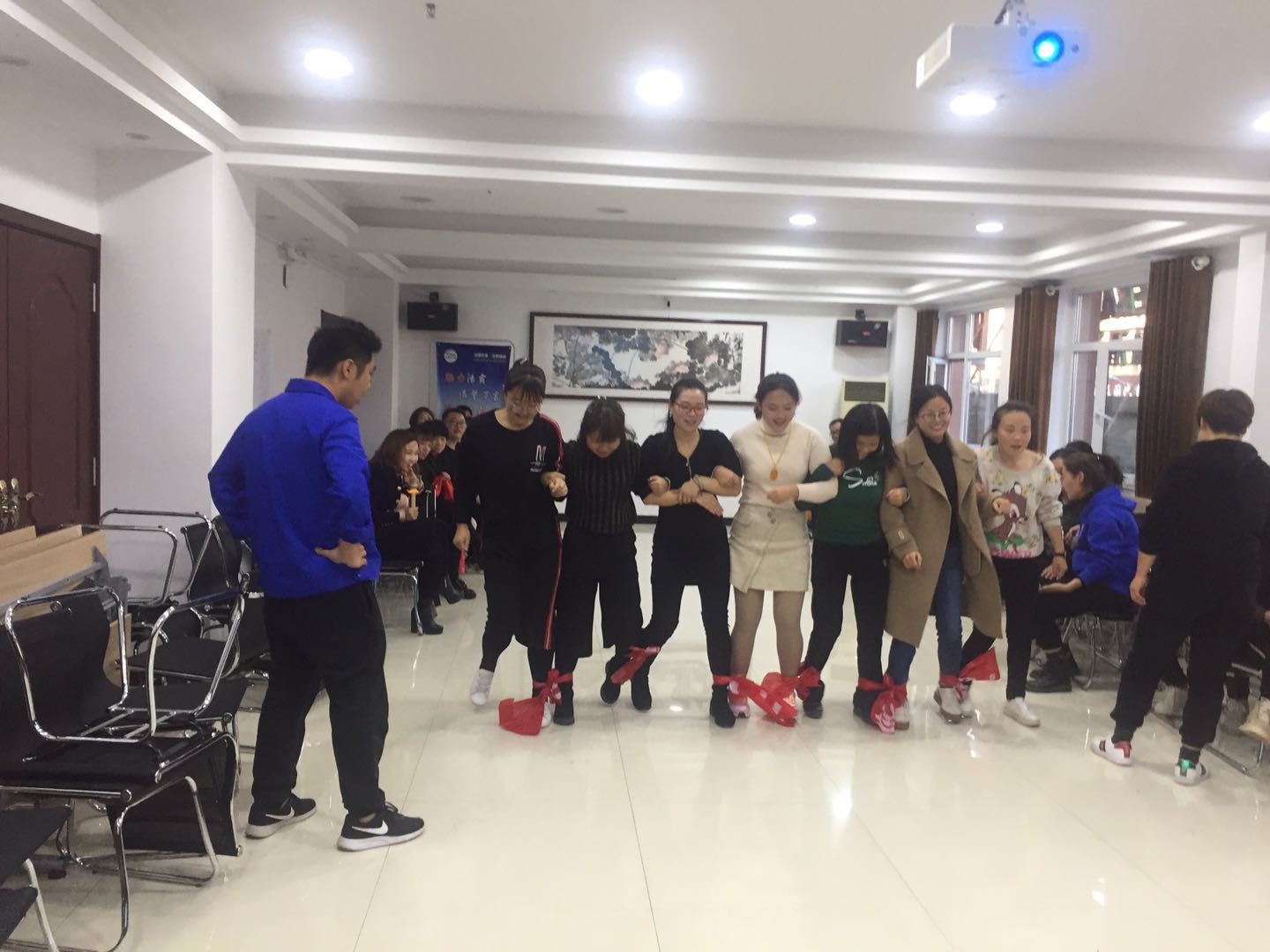 此次拓展訓練旨在進一步強化管理人員的團隊合作意識,參加活動人員分四組,在素質拓展訓練指導老師的精心指導下,通過團隊成員的團結協作,先后完成了“小主人、小天使”“過AB門”“兩人三足”等一系列以激發(fā)個人潛能、熔煉團隊智慧為宗旨的室內素質拓展訓練項目。