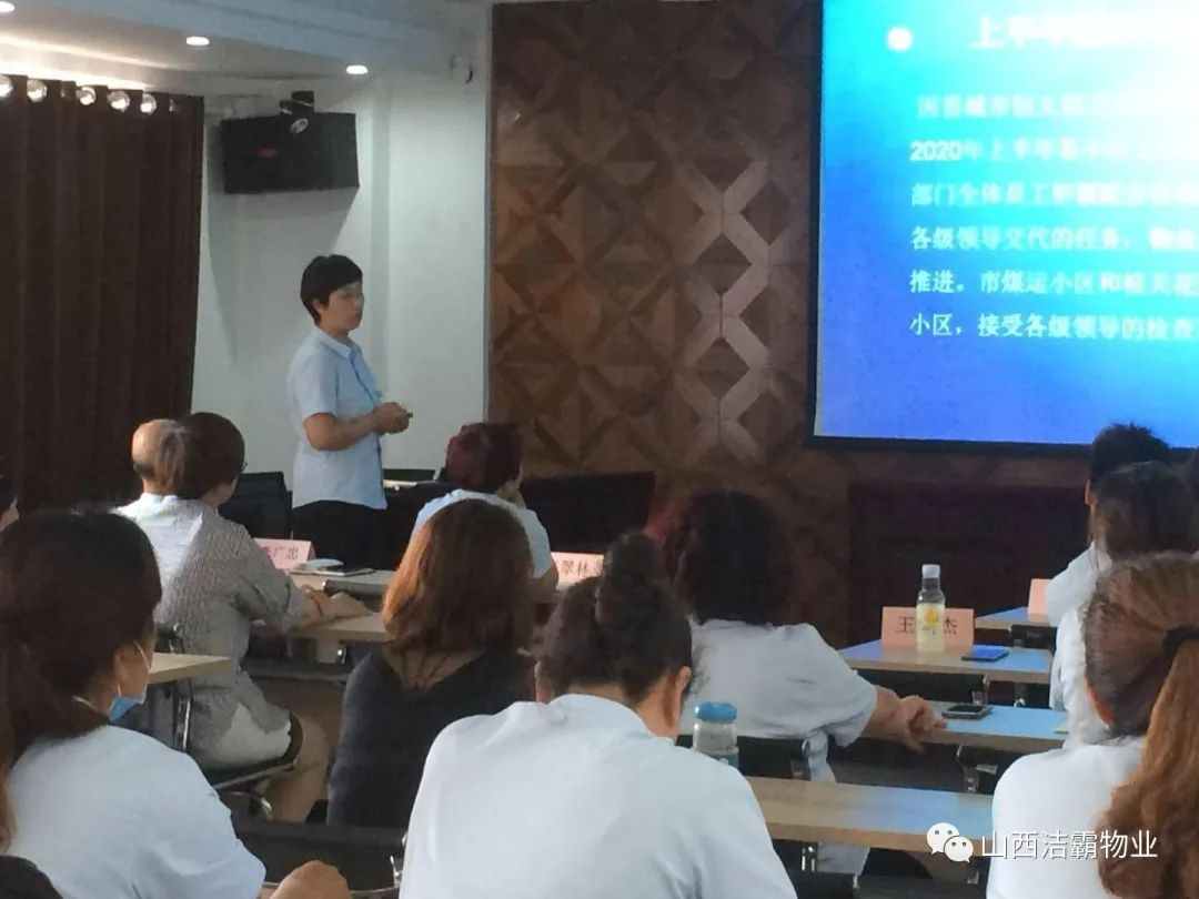 會上,公司保潔部經(jīng)理魏永梅、工程部經(jīng)理張翠林、山西百潔物業(yè)服務(wù)有限公司經(jīng)理閆秋麗、山西潔霸物業(yè)管理有限公司經(jīng)理李廣忠、晉城市合眾力勞務(wù)派遣有限公司經(jīng)理成濤、富士康項目部經(jīng)理王敏杰等分別就2020年上半年的經(jīng)營指標(biāo)完成情況作了詳細(xì)的匯報,并對比目標(biāo)找出了差距和根本原因,提出了下半年的經(jīng)營目標(biāo)及保障年度目標(biāo)實現(xiàn)的措施。