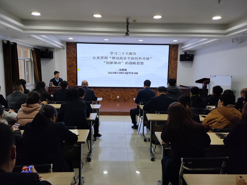 12月14日下午,公司舉辦“對(duì)外開放”“創(chuàng)新驅(qū)動(dòng)”專題講座,邀請(qǐng)市商務(wù)局原局長(zhǎng)王新善圍繞二十大報(bào)告的重點(diǎn)內(nèi)容“推動(dòng)高水平對(duì)外開放”“創(chuàng)新驅(qū)動(dòng)”等進(jìn)行宣講。