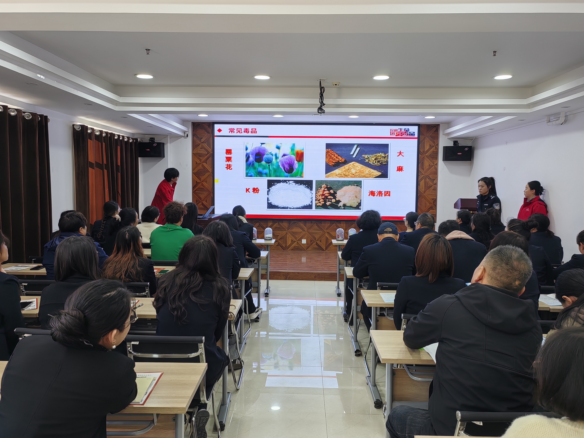 活動中,仁愛社工工作人員向公司員工發(fā)放了“健康人生綠色無毒”宣傳折頁,講解了新型毒品的種類、毒品的共同特征、毒品的危害及如何防范毒品危害等知識,現(xiàn)場展示海洛因、麻古、美沙酮、奶茶粉、跳跳糖、開心水等毒品模型,講解了各種毒品的特征、危害以及辨別方法,并通過提問互動交流,使大家對毒品的認(rèn)識更加深刻。呼吁大家要從自己做起,從現(xiàn)在做起,培養(yǎng)健康向上的興趣愛好,時刻樹立自我保護(hù)意識,正確認(rèn)識毒品,堅決抵御毒品誘惑,珍愛生命。 本次活動的開展,使公司員工進(jìn)一步認(rèn)識了毒品的危害,切實提高了大家的禁毒意識和拒毒、防毒能力,增強(qiáng)了法治觀念,營造了積極參與禁毒的良好氛圍。 活動中,西街派出所民警還對防范電信詐騙的知識向大家作了細(xì)致講解。 |