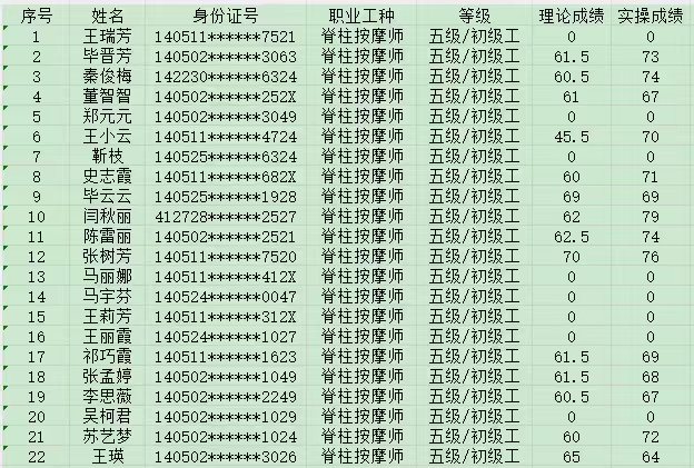 2024年10月13日第11批保健按摩師初級(jí)認(rèn)定人員成績公示
