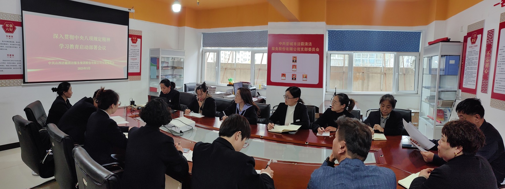 近日,山西潔霸清潔服務(wù)集團(tuán)股份有限公司黨支部召開(kāi)專(zhuān)題會(huì)議,對(duì)公司開(kāi)展深入貫徹中央八項(xiàng)規(guī)定精神學(xué)習(xí)教育進(jìn)行部署。支部書(shū)記程晉軍主持會(huì)議并講話(huà)。
